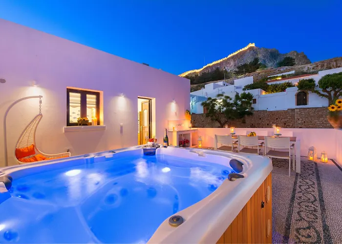 Popular points of interest near this traditional property include Acropolis of Lindos and Village of Lindos. The exclusive lodging is placed within a 10-minute drive of Kalathos Beach. Marias Taverna offers European dishes and lies about 5 minutes' walk away. You can get to Vlycha Beach 5 minutes away by car.